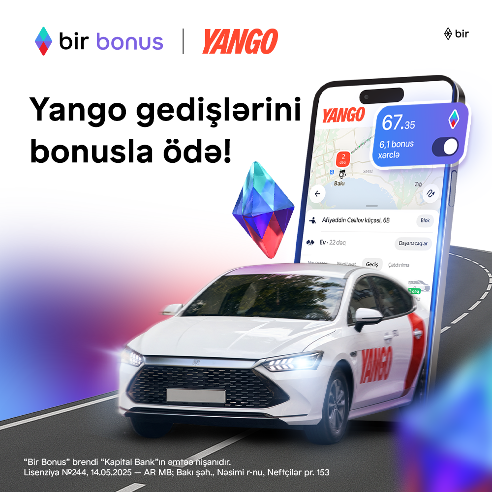 Bir ekosistemi və Yango arasındakı bu əməkdaşlıq müştərilərin gündəlik həyatını daha rahat etməklə yanaşı, bonuslardan istifadə sferasını da xeyli genişləndirir. Bu isə istifadəçilərin vaxtına və büdcəsinə əlavə dəyər qatır. İstifadəçilər səfərin dəyərinin 90%-dək hissəsini bonuslarla ödəyə bilərlər. Hər bir bonus 1 manata bərabərdir və cari bonus balansı birbaşa Yango tətbiqində əks olunur.