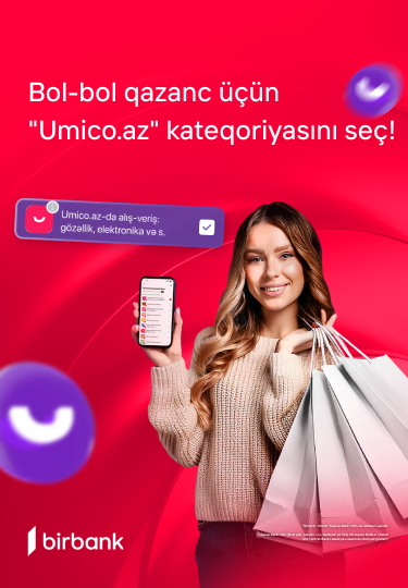 Throughout March, customers who select the “Shopping on Umico.az: beauty, electronics, etc.” bonus category in the Birbank app can collect bonuses by making holiday and gift purchases on Umico.az with their Birbank cards. The bonuses earned can be used for future shopping on Umico.az, redeemed at a wide network of partner merchants, or spent on utility, mobile, and other payments via the Birbank and m10 apps. You can also use your bonus balance for shopping with partner merchants!